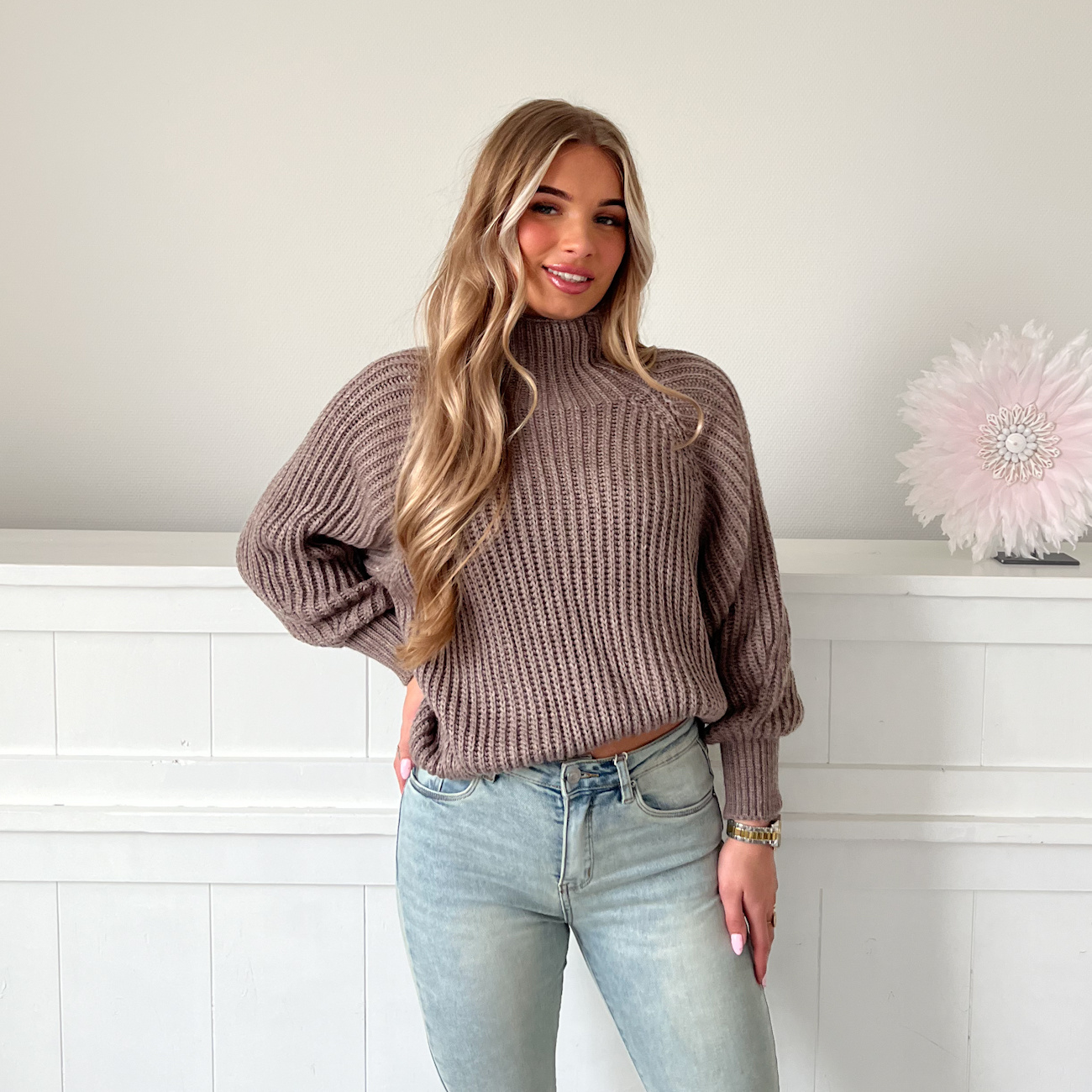 Mooie gebreide trui met halve col, de perfecte basic trui.