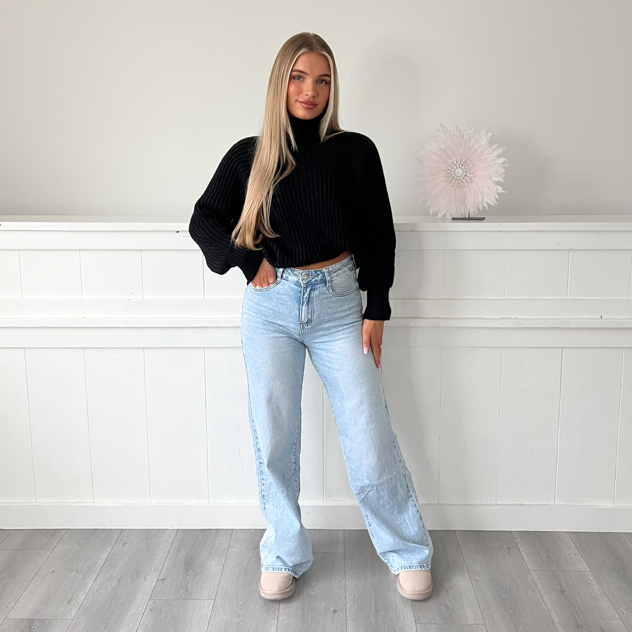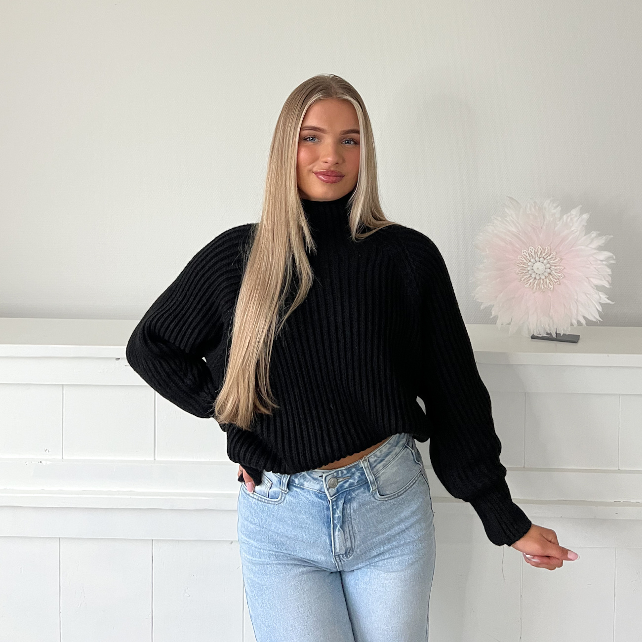 Mooie gebreide trui met halve col, de perfecte basic trui.