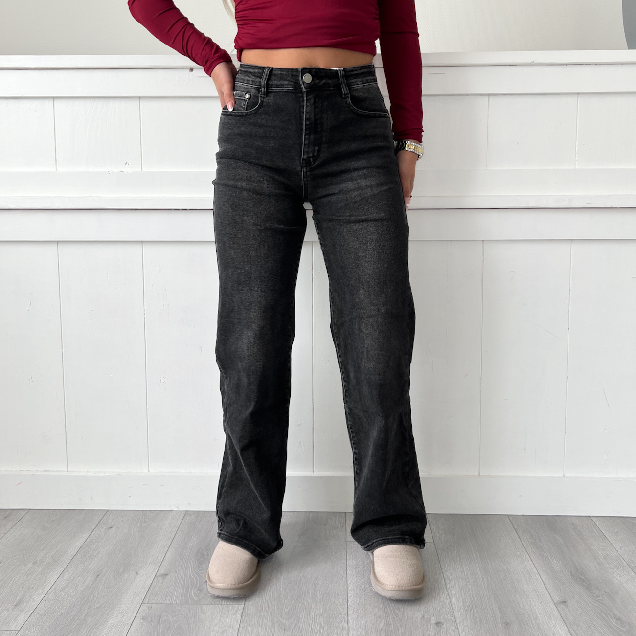 Super mooie zwarte/heel donkergrijze stretch wide leg. Fijne pasvorm, mooie kwaliteit en dat voor een leuke prijs!