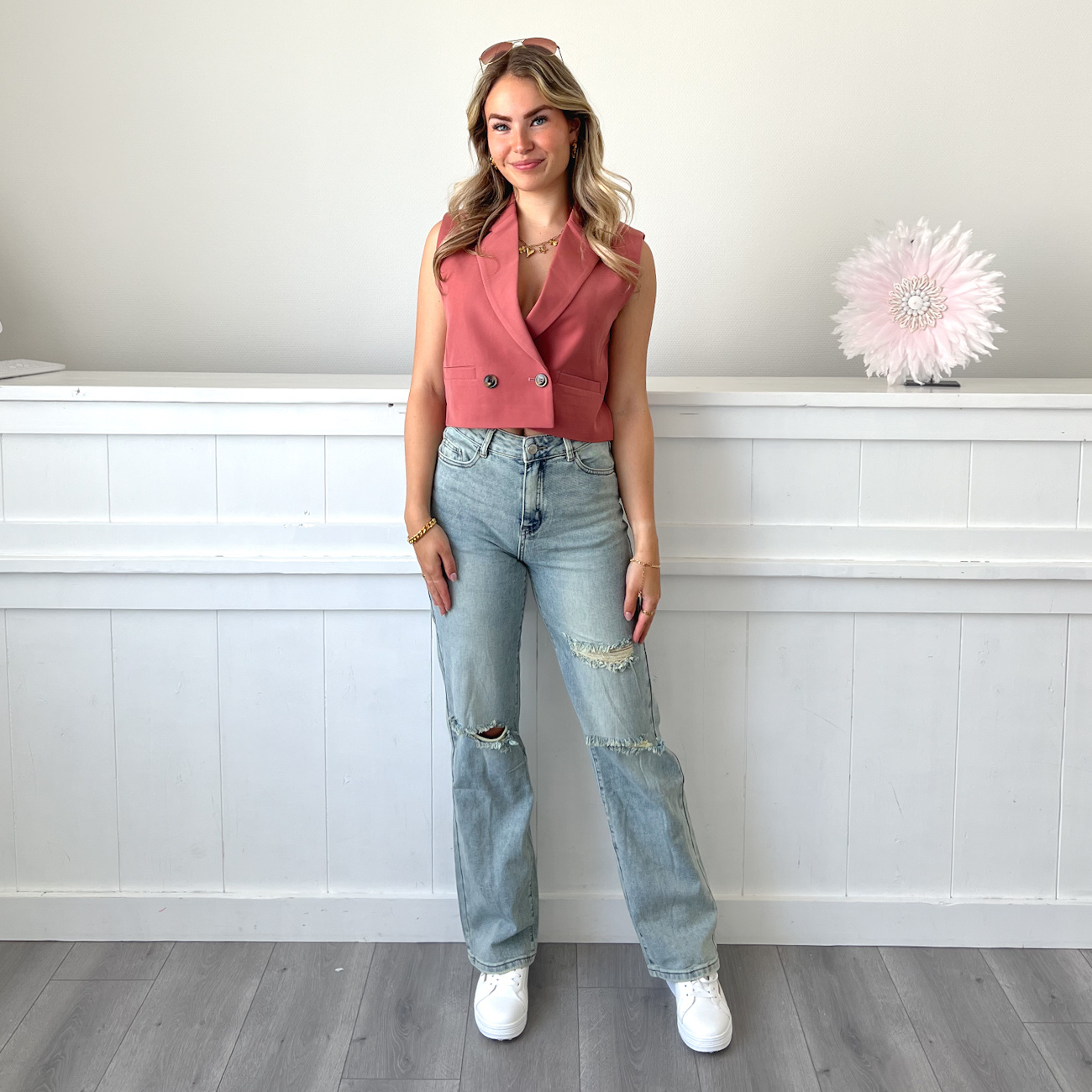 We love it!! Hoe leuk is dit blazer giletje?! Te dragen zoals op de foto maar ook super leuk met een lange mouwen (lace) top eronder.