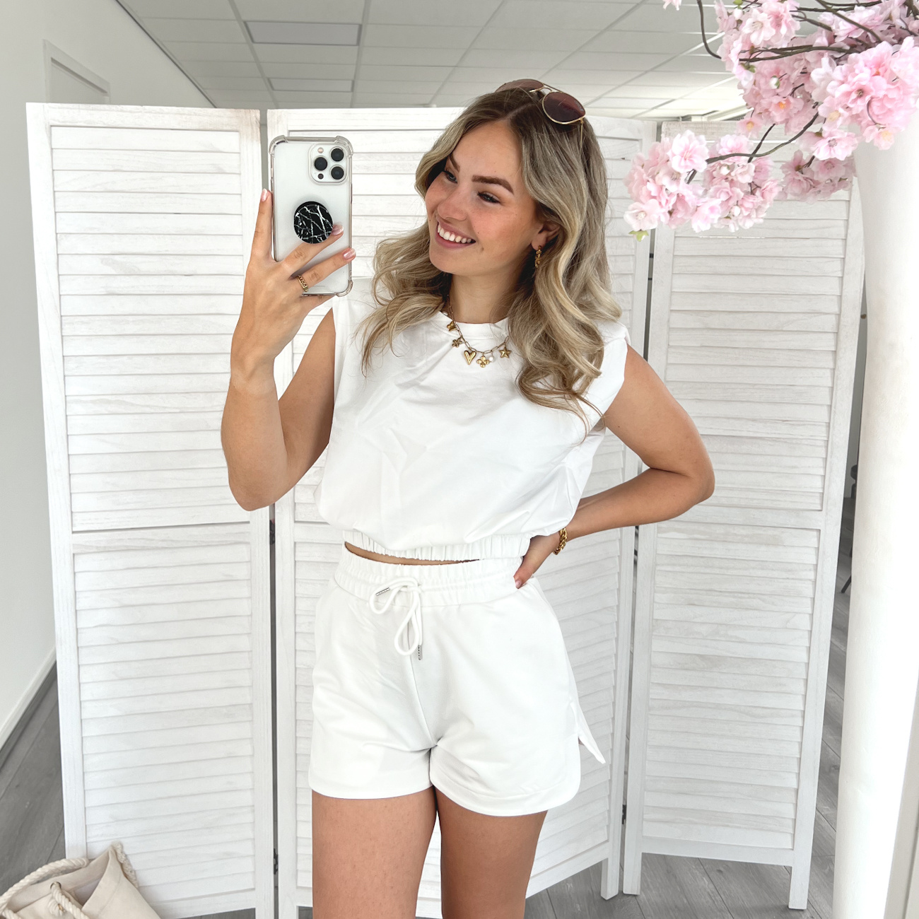 Super leuke witte BY SWAN short met steekzakken en elastieken band. Leuk als set met onze BY SWAN top of met combineer hem iets anders. Mooie dikke kwaliteit, schijnt minimaal door (geen opvallend ondergoed eronder dragen).
