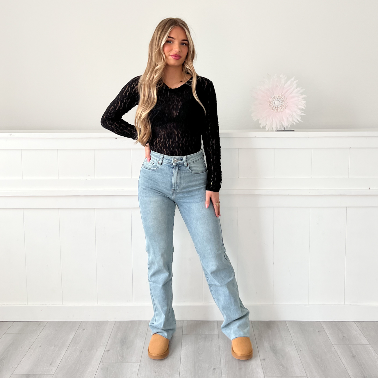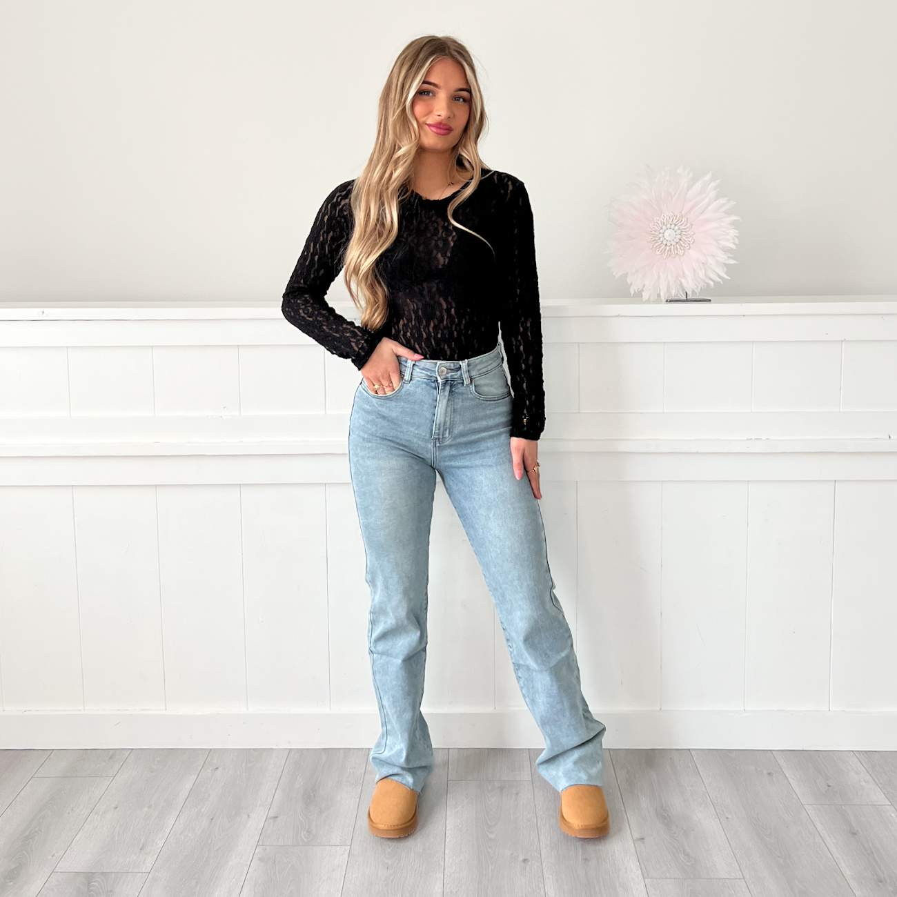 • Ons model is 164 cm lang en draagt normaal maat S