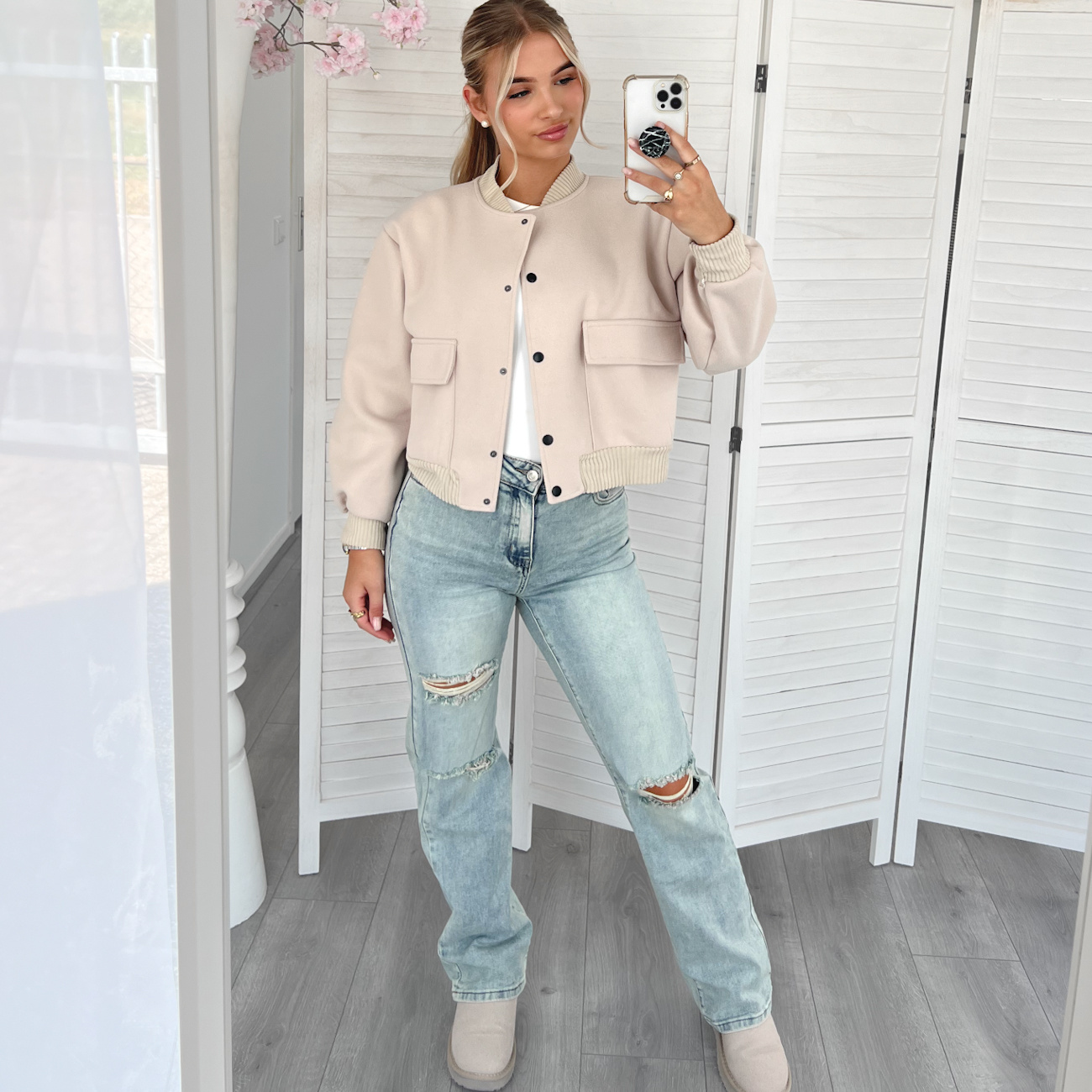 Super leuk bomber jasje met drukknopen en zakken. Fijn zacht stofje, leuk basic (tussen)jasje die makkelijk te combineren is.