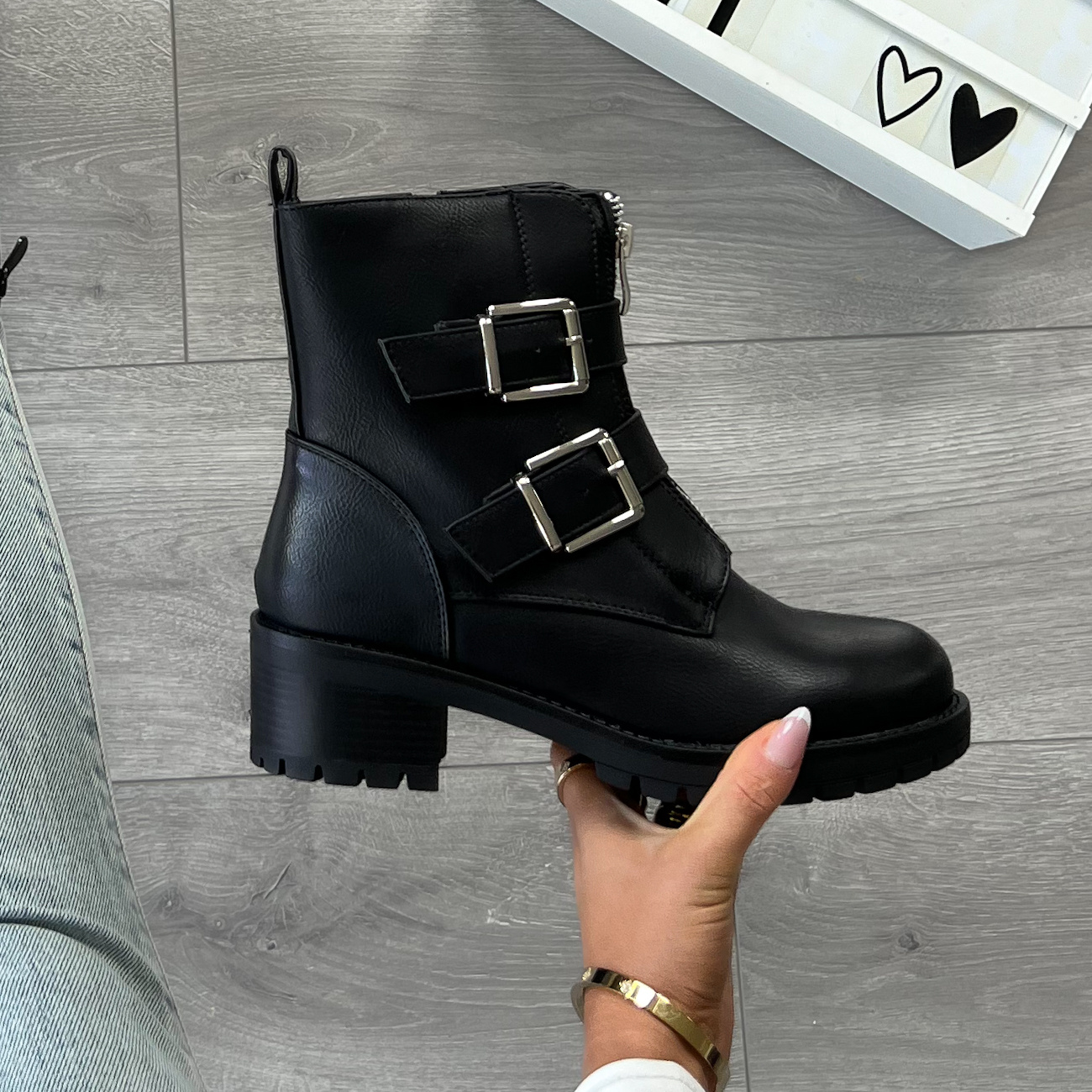 Super leuke zwarte boots met zilveren gespen en rits. De perfecte basic boots die heerlijk lopen! Je trekt ze gemakkelijk aan met een rits aan de binnenzijde.