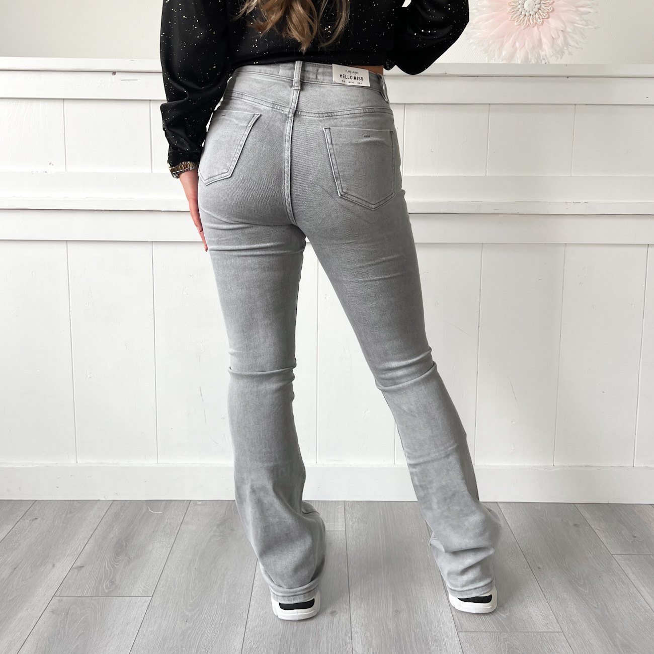 Super mooie grijze stretch flared jeans. De jeans heeft stretch en sluit mooi aan.