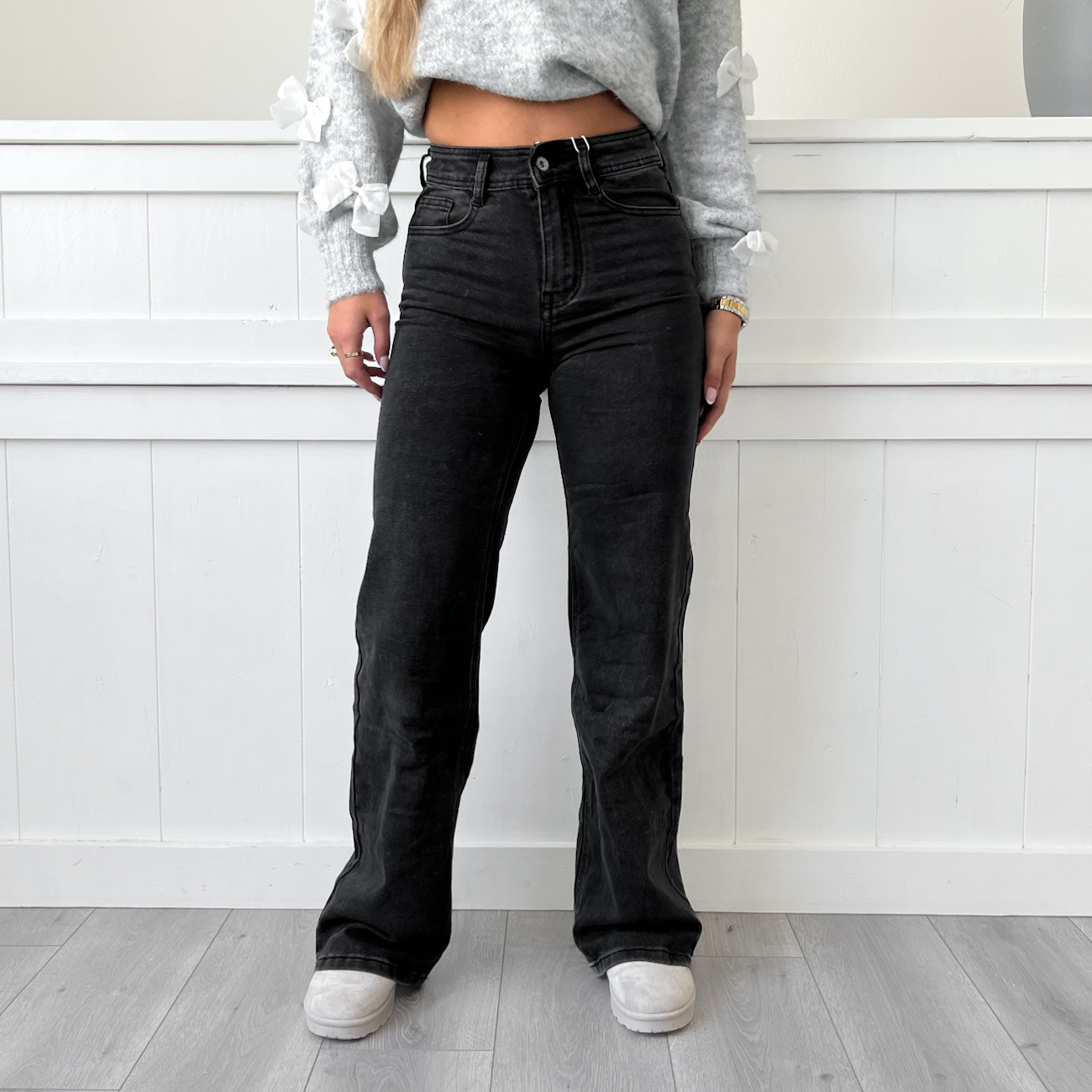 Super mooie heel donkergrijs/zwarte wide leg jeans, tall variant. Fijne stretch, high waist en hele mooie kleur.