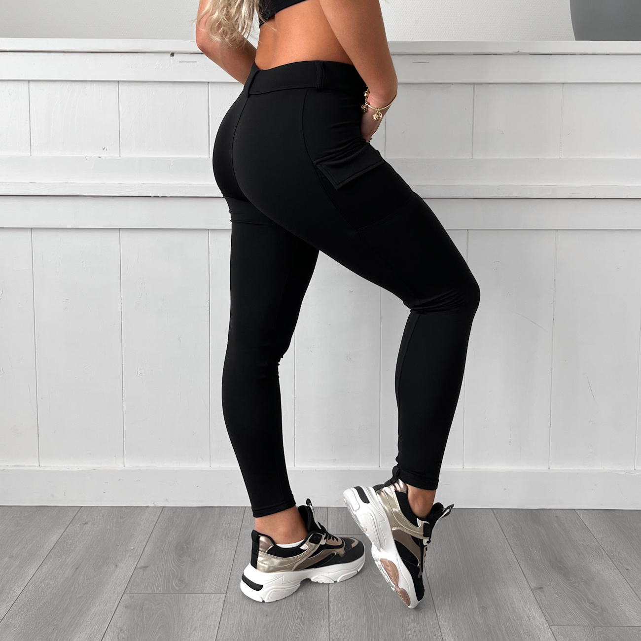 Super mooie zwarte legging met zakje en lusjes, dikke kwaliteit.
