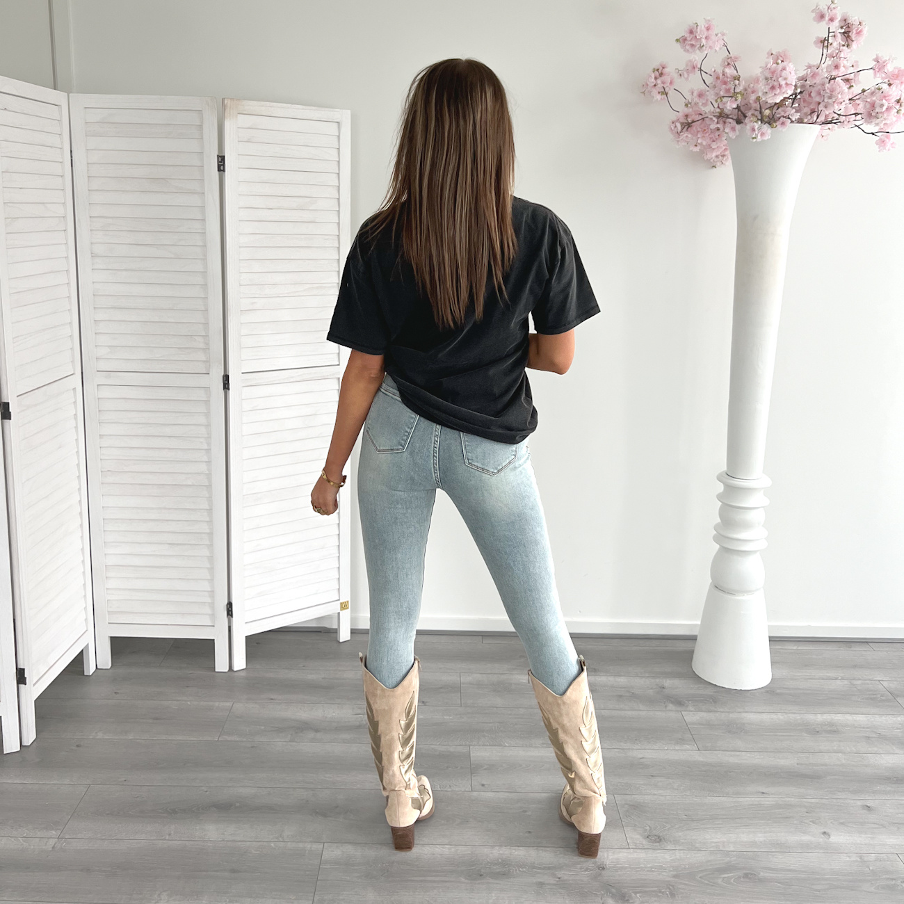 Super leuk grijs (stonewashed) Rock n Roll oversized t-shirt met gouden en grijs kleurige opdruk en tekst.