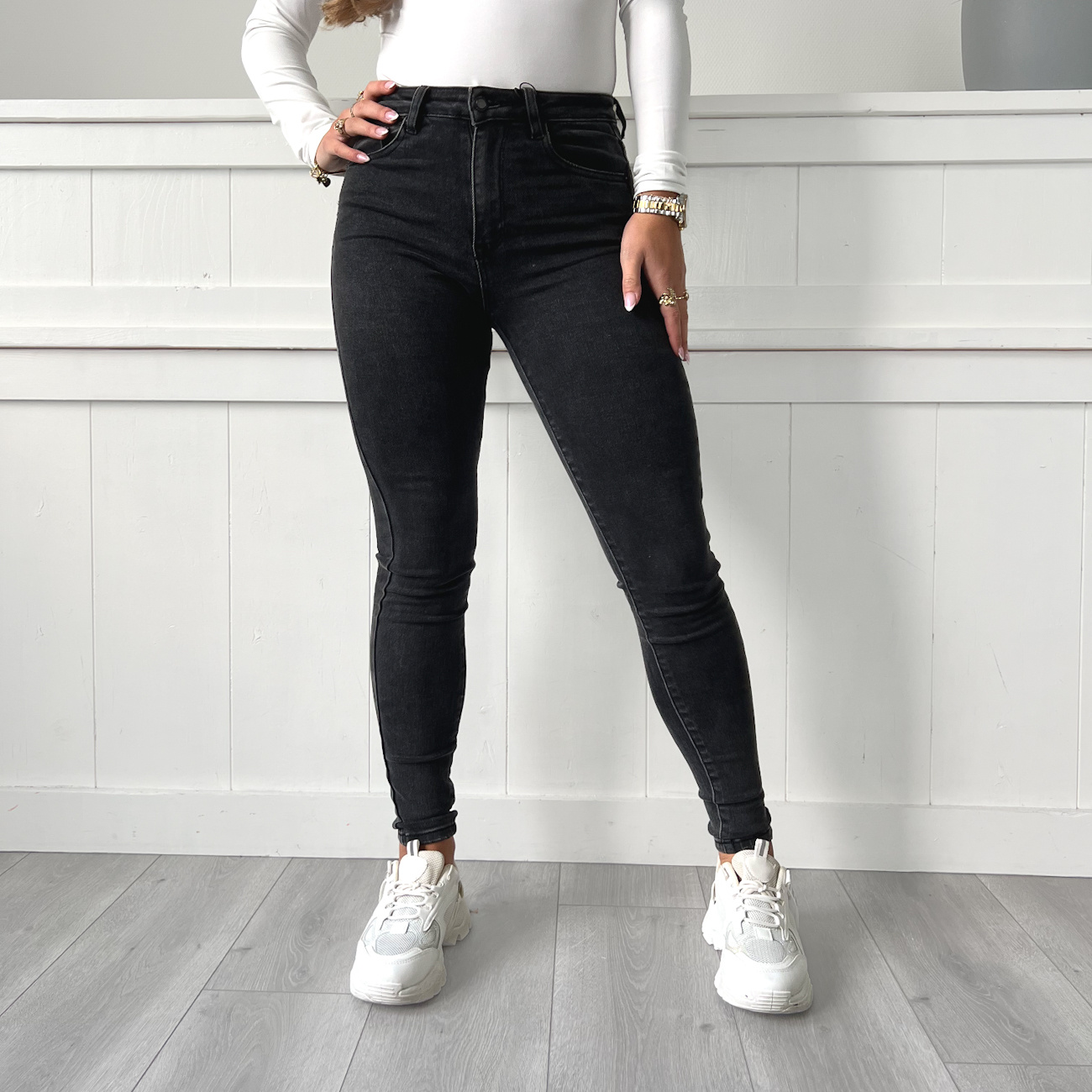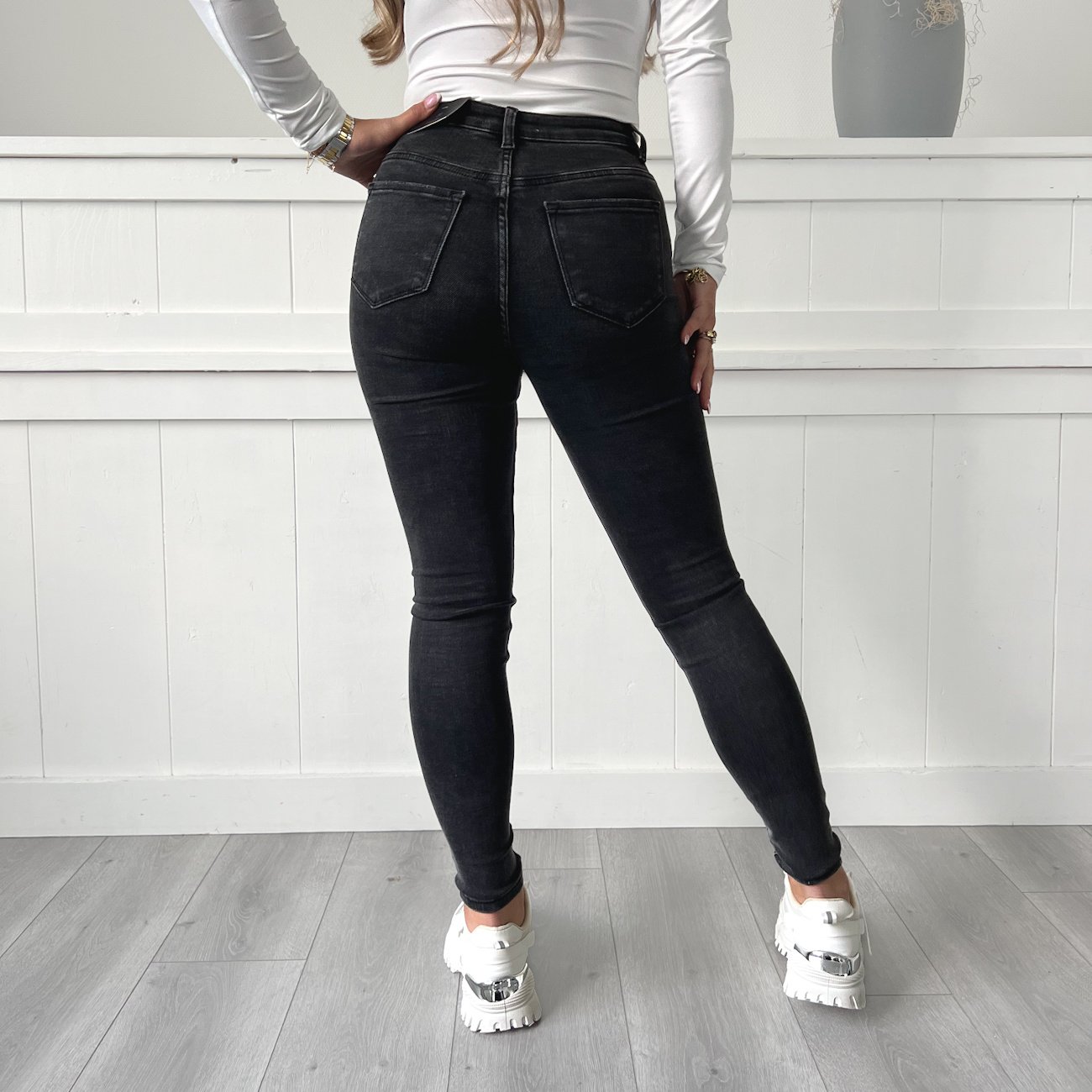 Echt een super mooie (heel) donkergrijs - zwarte skinny jeans. De jeans heeft op sommige plekken een lichte waas, die zorgt voor diepte in de jeans. Veel stretch, sluit mooi aan en high waist.