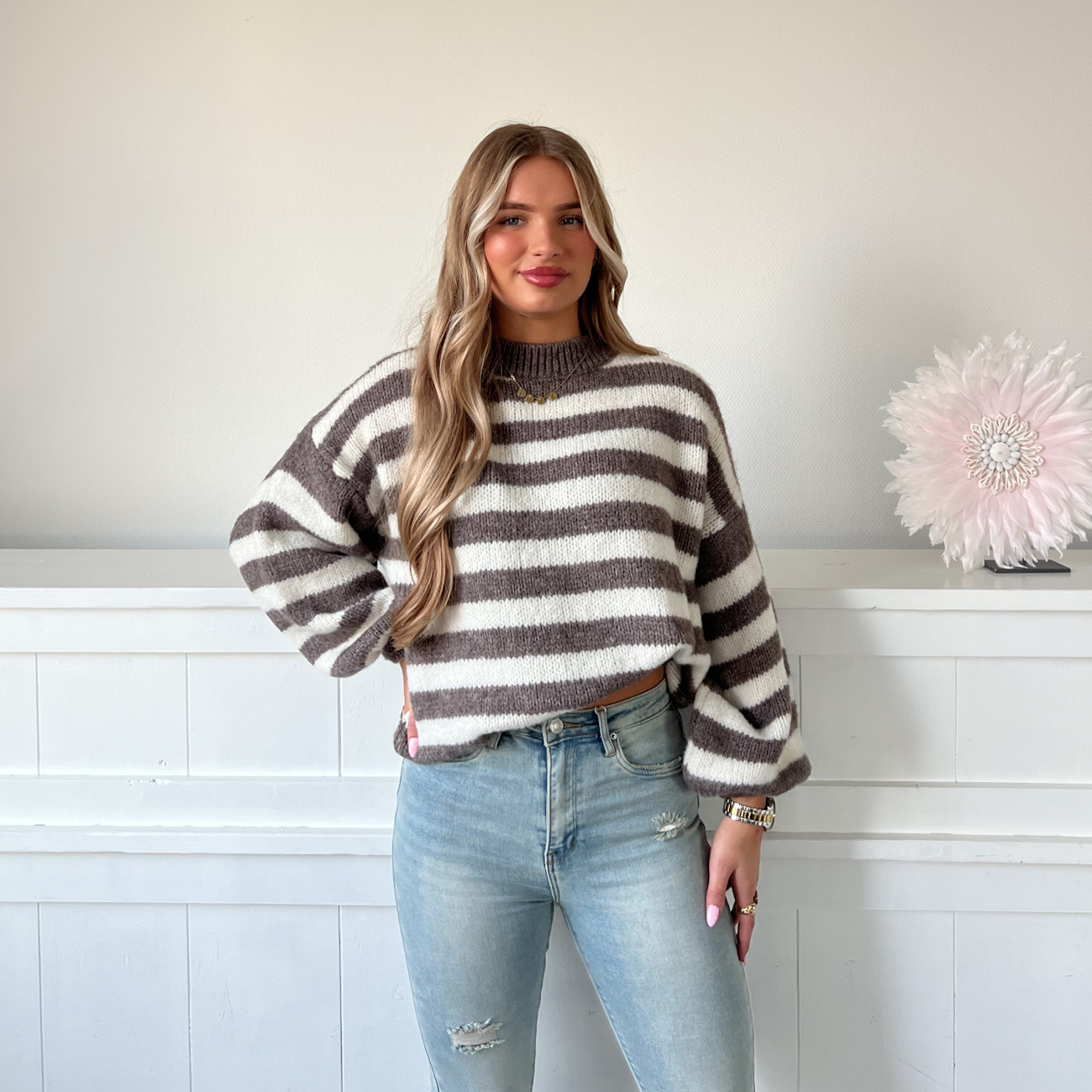 Leuke oversized strepen trui, lekker warm en kriebelt niet.