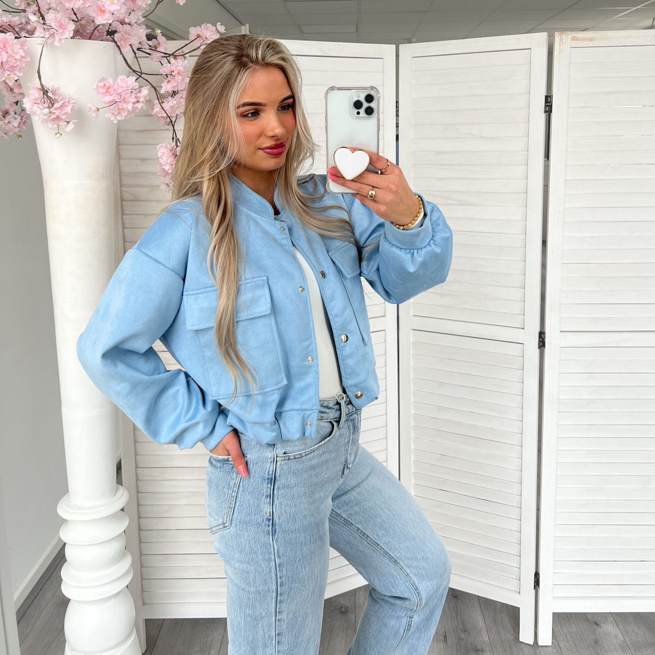 Super leuk suede bomber jasje, verkrijgbaar in verschillende kleuren.